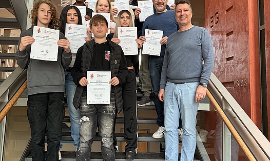 - der mittlere Schulabschluss in Klasse M10 mit der Abschlussprüfung in Deutsch, Mathematik und Englisch und der Projektprüfung in einem der BO-Fächer