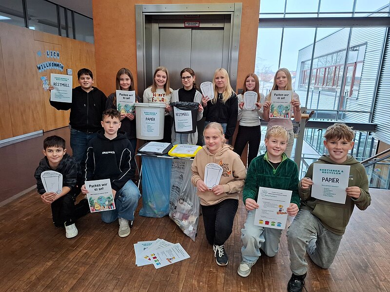Besonders stolz ist die Klasse darauf, dass sie ihr neu erworbenes Wissen nicht nur für sich behielt, sondern an die gesamte Schule weitergab. In kleinen Teams coachte die 6a alle Klassensprecher der anderen Klassen und führte kurze Workshops durch. Dabei erklärten die Schülerinnen und Schüler, welche Abfälle in welche Tonne gehören und welche speziellen Möglichkeiten zur Mülltrennung im Schulhaus vorhanden sind. Mithilfe selbstgestalteter Flyer und kleiner Sortierspiele konnten die Klassensprecher ihr Wissen direkt testen und anschließend an die eigenen Klassen weitergeben.